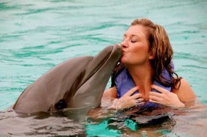 Dolphin kiss kosher cruiseSince I was a little kid, I always wanted to swim with dolphins. One of my favorite mammals, and hands down winner of all aquatic mammals, in my opinion. All my other favorites, puppies horses and elephants, are all beloved land dwellers.  But after a visit to Sea World, I became hooked on the intelligent, smiley creatures, with their sonar communications and gentle faces, so responsive to training they certainly understood a large vocabulary.  I felt a desire to interact and play with them and their pals, the sea, frolicking by their side, patting their smooth fur.